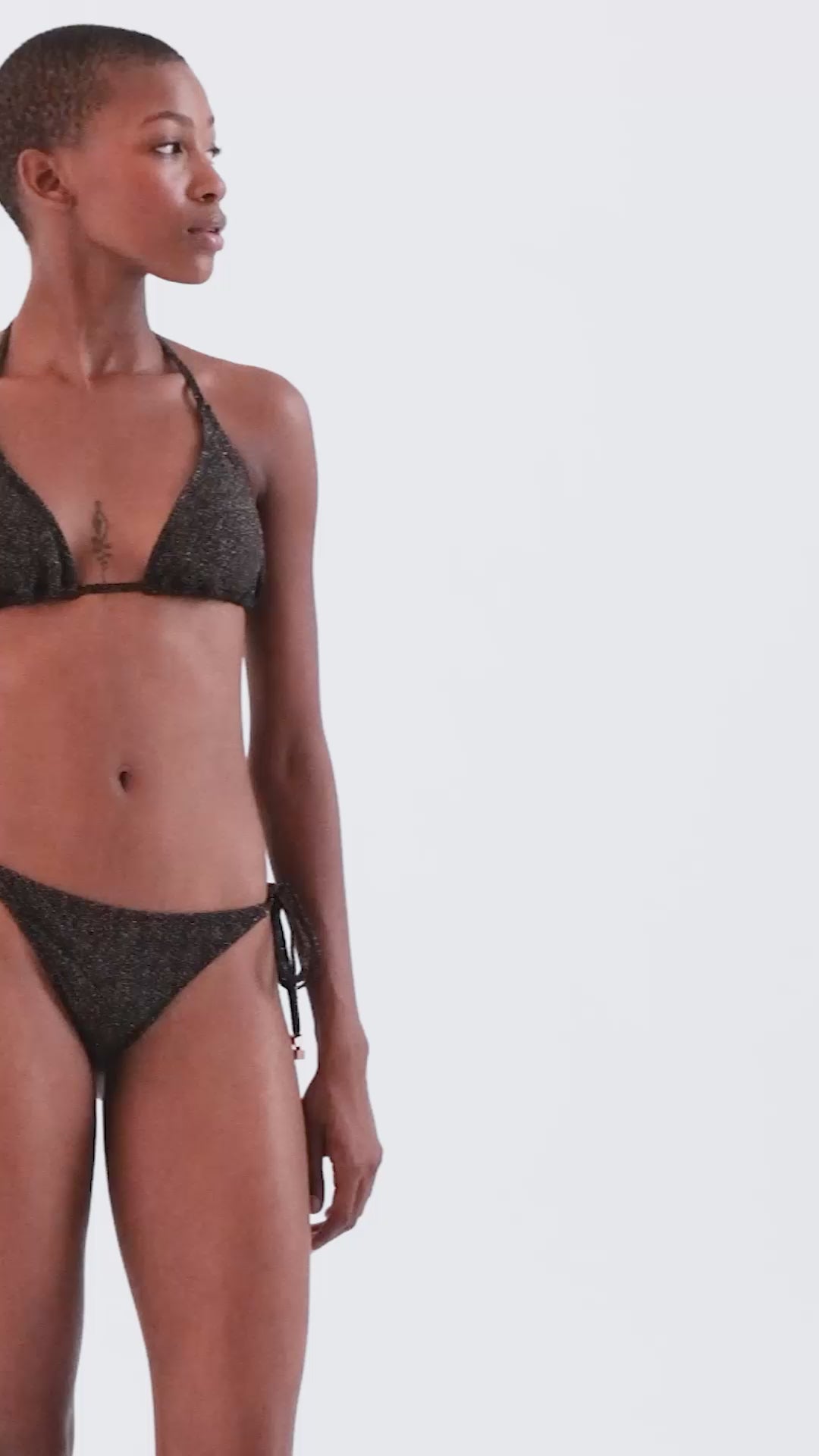 The Cabo Night Triangle Bikini Top is a classic triangle bikini that ties at the neck and back to ensure the perfect fit. Made from recycled lurex swimwear fabric and featuring the brand's signature finishes and removable pads.