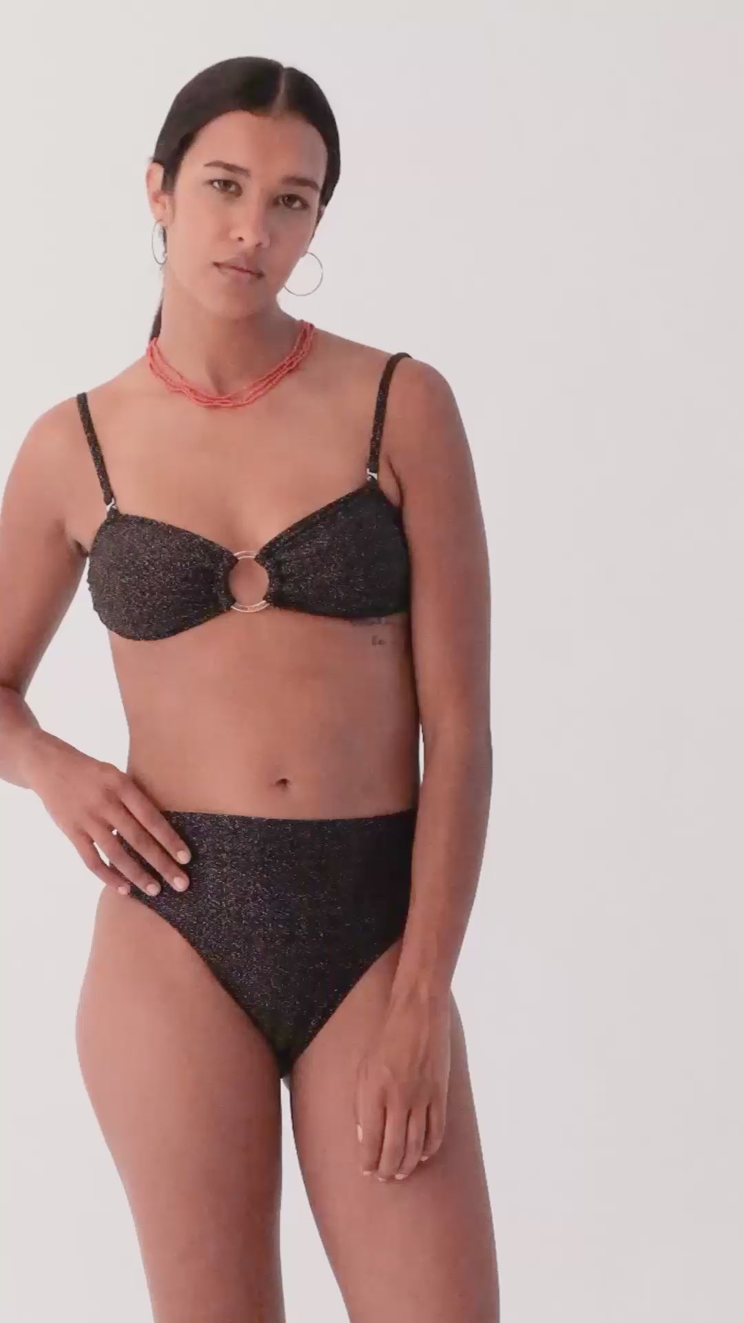 Top bikini strapless en tela de swim lurex que nunca pasa de moda con aro insignia de la marca. Tiras y copas desmontables.