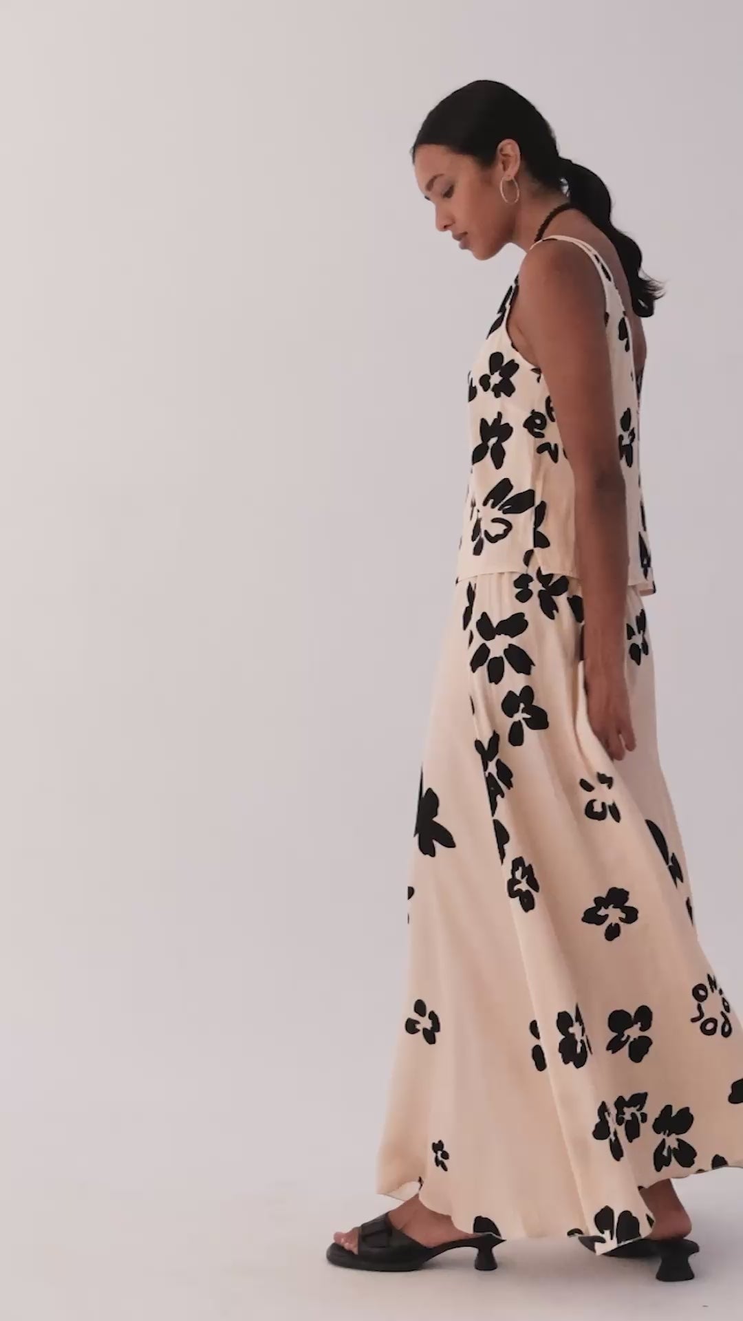 Musculosa de escote en V, en seda viscosa con estampado original de la marca. Combínalo con Maxi skirt o Nat pants. Tejido con elastano super suave al tacto.